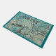 Modern sketched design of a steaming coffee cup next to a coffee grinder with an abstract blue background.