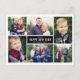 Send modern New Year postcards with this clean black-and-white collage layout featuring multiple family photos. A bold typographic panel centers “Happy New Year” with your name and year below. The back includes coordinating postcard formatting and space for your note, address, and postage stamp.