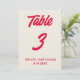 Modern and elegant colorful cream and red wedding table numbers. As you see it features a cream background with bold red script that matched the whole suite.