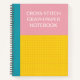 Stylish graph paper notebook for cross-stitch design with a bold colour block cover design in pink, yellow, and aqua blue.