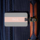 Custom-designed monogram luggage tag featuring modern simple colour block design.