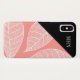 Modern black colour block and coral white leaf skeletons monogram phone case.