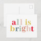 Modern Colourful All Is Bright | Happy Holiday Postcard
