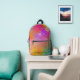 This fun backpack design features a colourful watercolor background in shades of magenta, orange, green and yellow. You can customise it with your own monogram on the front. It's a cool modern design for kids and even adults!