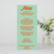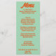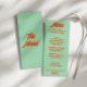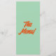 A colourful retro funky modern green wedding dinner menu. Which features chic template design of boho vintage green background and orange bold typography . And bright back green background. Perfect and matching with the whole suite.