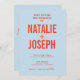 This wedding invitation is perfect for your wedding with unique design. An elegant unique simple minimalist blue orange wedding template invitation. Which features plain funky pale dusty blue background. And bright orange bold modern bride's and groom's first names. and editable info and photo on the back . Affordable and it is also digital electronic e-invitation if you want to send it by text or email. All the info are customisable by clicking on the personalise button. So Grab it and make it yours so you make you invites engaged and excited .