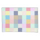 This is a trendy and stylish design featuring multicolored squares arranged in a chequered pattern on a neutral grid background. The squares come in various colours like blue, green, pink, purple, yellow, grey, orange, and rainbow pastel shades, arranged to create a unique and joyful geometric chequerboard design.
