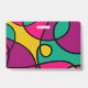 Modern day care centre name badges in a bold colourful design with name space for your company and staff member name with the art printed on the back.