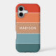This colourful and modern design features a colour-block pattern in blue, brown and orange with your personalised name #iphone #cases #iphonecases #electronics