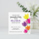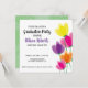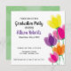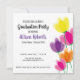 This is a girly, colourful, bright and modern graduation party invitation. Hot pink, purple yellow and orange flowers. The back of the invitation is green. Customisable text allows you to add your information. This invitation can be used for a graduation, birthday or any surprise party.