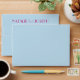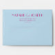 A retro modern hand written bright colourful wedding envelope. Which features bold bride and groom's names in pink colour. And personalised return address . On simple blush bright blue colour background. Which suits the whole wedding suite.