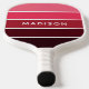 Modern Colourful Pinks Colorblock Personalised Name Pickleball Paddle features a simple, colourful and modern design in a colour block pattern of pink and plum shades with your personalised name in modern script typography. Perfect gift for Christmas, birthday, Mother's Day, best friends, sister and more. Designed by ©Evco Studio www.zazzle.com/store/evcostudio