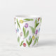 The product design features a pattern of colourful tulip flowers in purple, red, pink, blue, and yellow. This botanical illustration makes an elegant modern and unique latte mug - Gift idea for her birthday, Easter, Mother’s Day, and more.
