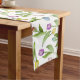 The product design features a pattern of colourful tulip flowers. This elegant botanical illustration makes a modern and unique table runner for Easter, Mother's Day, Wedding, or any other special occasions!