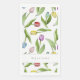 The product design features a pattern of colourful tulip flowers in purple, red, pink, blue, and yellow. This original botanical illustration with personalised text makes elegant modern and unique paper guest towels.