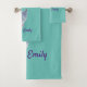 Modern Colourful Turquoise and Pink Feather Bath Towel Set