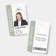 Keep your business secure and stylish with this sage green double-sided corporate ID badge, featuring a built-in barcode and return address for maximum functionality. This professional vertical name tag is perfect for marketing specialists, tech firms, and large organizations that require scannable access and clear employee identification. The front displays a high-resolution staff photo and job title, while the back includes a customizable return-to-sender address and security barcode. Made with a clean, modern aesthetic and easy-to-read typography, this badge is a durable and practical essential for any corporate security protocol or lanyard system.