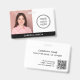 Modern Company Logo Employee Photo ID Badge in black and white simple design, suitable for any business line. Add logo, employee photo and name on the front. Company name, employee ID number, address, and any other details on the back, as well as a QR Code, simply enter your URL and code will be created.