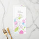 Modern confetti flower petals wedding or formal dinner menus. Double-sided simple modern line art flower with petal confetti style pink, green and blue dinner menu. Uniquely drawn and designed by Sarah Trett for www.mylittleedenweddings.com