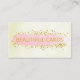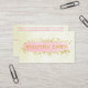 These modern business cards for card craft and scrapbook page makers has a pink watercolor stripe over gold FAUX glitter confetti on a beige background.