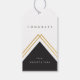 A modern gift tag featuring customisable congrats message with gold and black triangle elements.