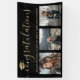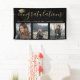 Modern congratulations script 3 photos gold and black with a graduation cap topper.