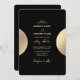 A modern black and gold semi circle abstract wedding design. This contemporary design is ideal for all seasons Spring, Summer, Fall and Winter weddings. A stylish gold foil look design in a trendy black and gold theme. A classy wedding invitation design with modern elements. Matching wedding stationery items and other wedding invite formats are also available.