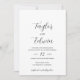 Contemporary black and white wedding invitations featuring a simple and minimalist layout with your names in an elegant calligraphy script and your wedding details below in a modern format.