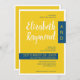 Minimalist and contemporary wedding invitation with a modern layout in blue and yellow.