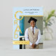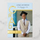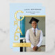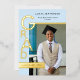 Designed to highlight your graduate’s photo and achievements, the layout balances minimalism with visual impact, making it an ideal choice for high school or college graduates. The cool blue hue offers a polished alternative to traditional neutrals, while the gold foil adds warmth and sophistication without overpowering the design.