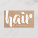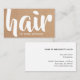 Modern fully customizable business card template with bold white fonts and printed/faux kraft background. Perfect for hair salon, hairdressers.