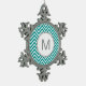 Modern, cool, trendy teal chevron zigzag pattern m snowflake pewter christmas ornament
