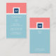 Modern Coral and Blue Monogram Business Card