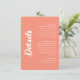 The Modern Coral Pink Wedding Details Enclosure Card features a clean and minimalist design with a soft coral pink background. The layout is simple and well organized, making it easy for guests to read important wedding information.
