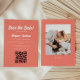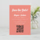 Modern and elegant, this coral pink wedding save the date cards is customisable with QR code for your wedding website on the front, and a custom engagement photo on the back. Change the colours of this card by clicking on "personalise this template," then "edit using design tool." If you need help making any changes, please message the designer.