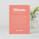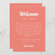 Modern Coral Pink Wedding Weekend Itinerary Card. Add your welcome message for family and guests on the front, and the details of your wedding weekend on the back, such as time and location info. You can also change fonts, colours, etc., by clicking on "personalise this template," then "edit using design tool." Please message the designer if you wish to have changes done for you.