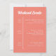 Modern Coral Pink Wedding Weekend Itinerary Card