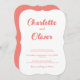 Modern Coral Pink White Script Decorative Wedding Invitation