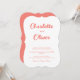 The couple’s names are highlighted in flowing script, creating a romantic focal point. Supporting details are arranged with clear spacing for easy reading. The warm coral pink color brings a welcoming and joyful feel, making this invitation ideal for spring and summer weddings.