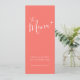 Modern coral text white heart simple wedding menu
