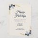 Enhance your year end communication with this modern minimalist business holiday card. Designed specifically for corporate clients and professional outreach, this template provides a sophisticated, non denominational way to share season's grreetings. The clean layout and subtle design maintain the upscale, professional aesthetic your brand demands. The design features striking watercolor navy blue eucalyptus and delicate gold foil pine sprigs that subtly frame the message. The typography utilizes a premium elegant calligraphy script for the main greeting and a clean serif font for the customizable sign off, ensuring clear hierarchy and refinement. The navy blue and gold palette against the soft cream background projects a premium image. This customizable template is perfect for sending corporate or official employee holiday greetings. It embodies a minimalist, modern style that focuses on quality and clarity, making it the ideal choice for any discerning business.