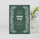 This corporate business holiday party invitation featuring elegant white hand drawn winter foliage on a dark green background.