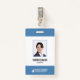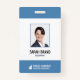 A modern business ID badge featuring the photo, name, occupation of a staff member. The corporate employee ID also includes the business name and logo of the company. The colour of any design element of this ID badge can be personalised.