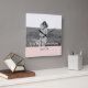 Modern Couple Photo Pink & Grey Perosnalized Name Square Wall Clock