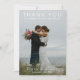 Express your gratitude to your wedding guests for helping to make your day a special one. This modern and simple card features a photo from your wedding on the front with a Thank You message, bride and groom name and wedding date in a modern white typography. The reverse side is coordinated in olive green.