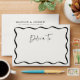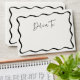Add a stylish touch to your wedding suite with these Modern Cream and Black Wavy Frame personalised wedding envelopes. The front of the envelope features a black wavy frame border with "Deliver To" displayed in a handwritten black script. The retro wedding envelope reverses to display your names and return address on the flap in bold black lettering. Designed to coordinate with our Modern Wavy Frame wedding collection.