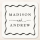 Modern Cream and Black Wavy Frame Wedding Square Paper Coaster