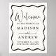 Welcome your guests with timeless charm using this Modern Cream and Black Wavy Frame Wedding Welcome Sign Poster. Featuring your names and wedding details in sleek black lettering against a soft cream background, this design offers the perfect mix of retro and modern elegance. A bold black wavy border frames your information, creating a stylish focal point for your entryway, ceremony, or reception. This customisable wedding sign is ideal for modern weddings, black-tie celebrations, and chic minimalist events. Choose to have it professionally printed or select the instant download option to print at home for convenience.
