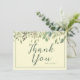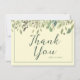 Modern wedding thank you card design features watercolor eucalyptus leaves border on cream background with customisable text blocks in modern fonts