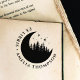 Modern Crescent Moon Trees & Stars Round Ex Libris Self-inking Stamp.